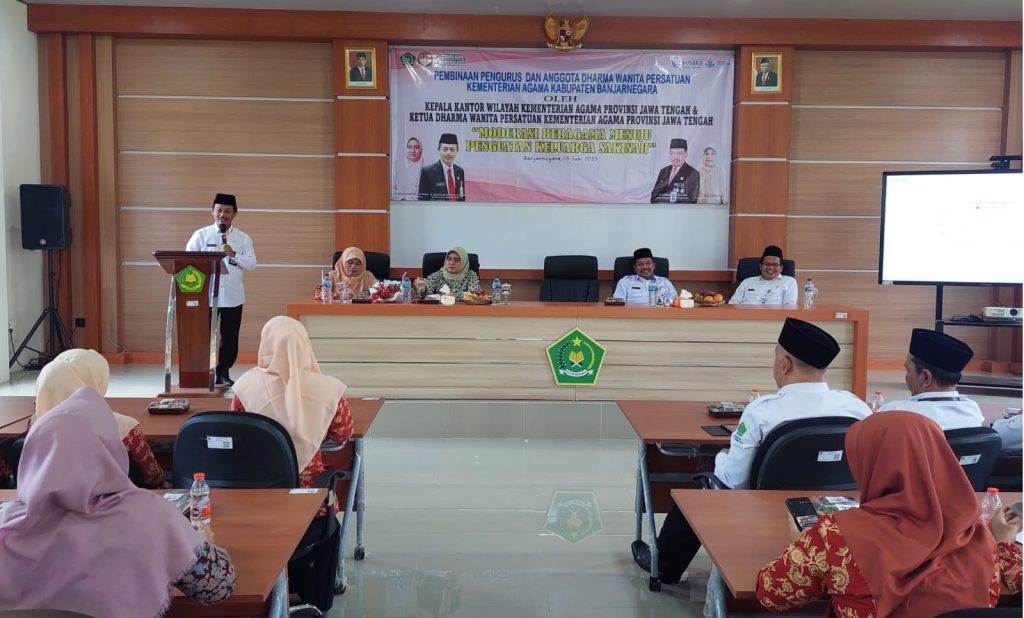 Hj Laela Karsono selaku Ketua DWP kemenag Banjarnegara dalam kesempatan kali ini menyatakan bahwa kegiatan ini mengangkat tema ”Moderasi Beragama Menuju Penguatan Keluarga Sakinah” dengan maksud agar program prioritas Kementerian Agama yaitu moderasi beragama bisa dipahami dan diaplikasikan oleh seluruh keluarga besar Kementerian Agama