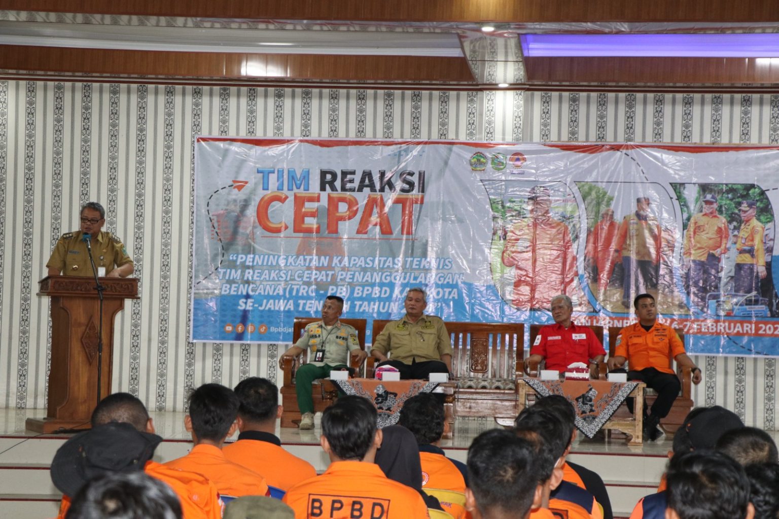 Pj Bupati Banjarnegara, Tri Harso Widirahmanto membuka kegiatan peningkatan kapasitas teknis Tim Reaksi Cepat (TRC) penanggulangan bencana tingkat provinsi Jawa Tengah di Aula Desa Pekandangan Kecamatan Banjarmangu, Selasa (6/2/2024).