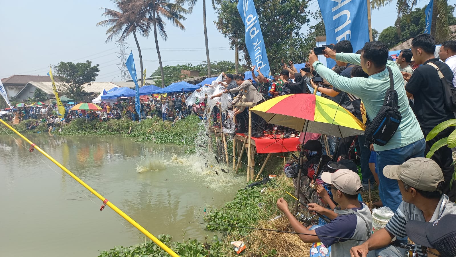 CILEGON – Ribuan pemancing dari berbagai daerah di Kota Cilegon padati Situ Rawa Arum yang berlokasi di Kelurahan Rawa Arum, Kecamatan Gerogol, Minggu (1/10/2023).