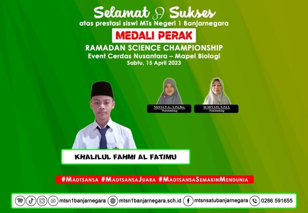 Khalilul Fahmi Al Fatimu, salah satu siswa kelas VIII C unggulan tahfidz MTs Negeri 1 Banjarnegara berhasil meraih medali perak. Capaian ini tentu sangat membanggakan dan disambut dengan syukur oleh seluruh keluarga besar Madtsansa.