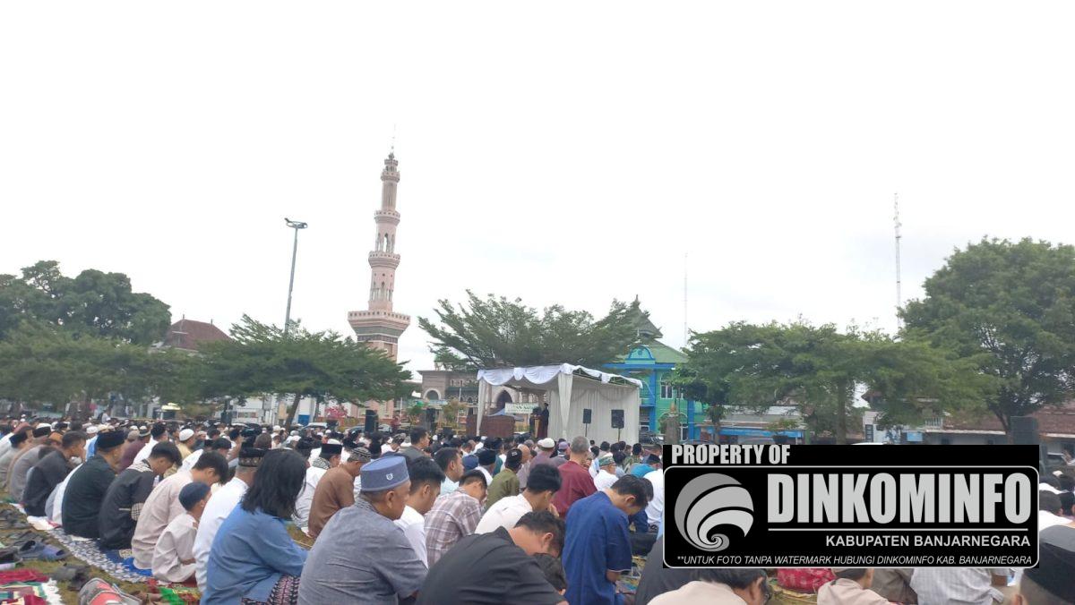 Sejak pagi jemaah yang berada di wilayah kota Banjarnegara mulai berdatangan di Alun-alun kota Banjarnegara. Gema takbir dan tahmid berkumandang di sudut-sudut kota Banjarnegara.
